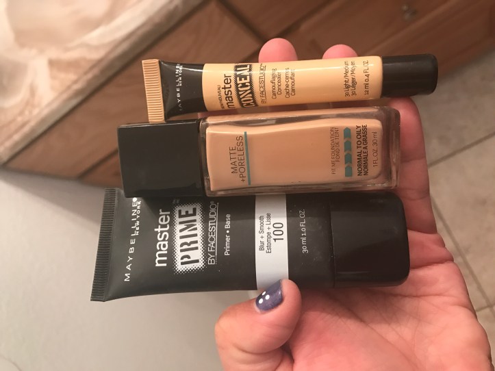 I’ve always been a high end makeup girl but right now I cannot afford the higher end stuff and honestly the drug store makeup has come a LONG way since I last tried it. For my makeup primer I used Maybelline Prime Master Blur + Smooth. When I used this with my other makeup I didn’t like it. However, using it with the Maybelline Fit Me Matte and Poreless foundation, it works wonderfully. The two were made for each other. For my concealer, I used Maybelline’s Master Conceal in light/medium. I use this under my eyes and some contour. In my opinion this is a medium coverage concealer. I would give it a 7 out of 10 only because I prefer a heavier coverage concealer for my hyperpigmentation and acne scars. For my foundation, I used the Maybelline Fit Me Matte + Poreless in true beige 222. This was almost a perfect match for my skin tone. I would say it is also a medium coverage foundation. To determine my color match I went on the Maybelline website and took their little quiz to determine what color was best for me and sure enough, it was right. I would highly suggest doing that before heading to the store.