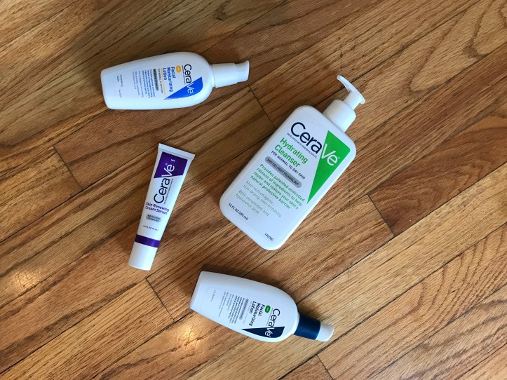I wash my face at night with CeraVe Hydrating Cleanser for normal to oily skin. It’s super gentle and has hyaluronic acid in it which is what I was hoping for anyway. After my nightly wash I apply Skin renewing cream serum and PM moisturizing lotion. I was surprised to wake up to a super soft face that felt moisturized STILL. I do not wash my face in the morning but I do rinse it with water and pat dry then I apply the AM moisturizing lotion which contains SPF 30. My pervious moisturizer only had 15, so this is awesome considering we are outdoors a lot and I do tend to get freckles on my face, which I HATE.