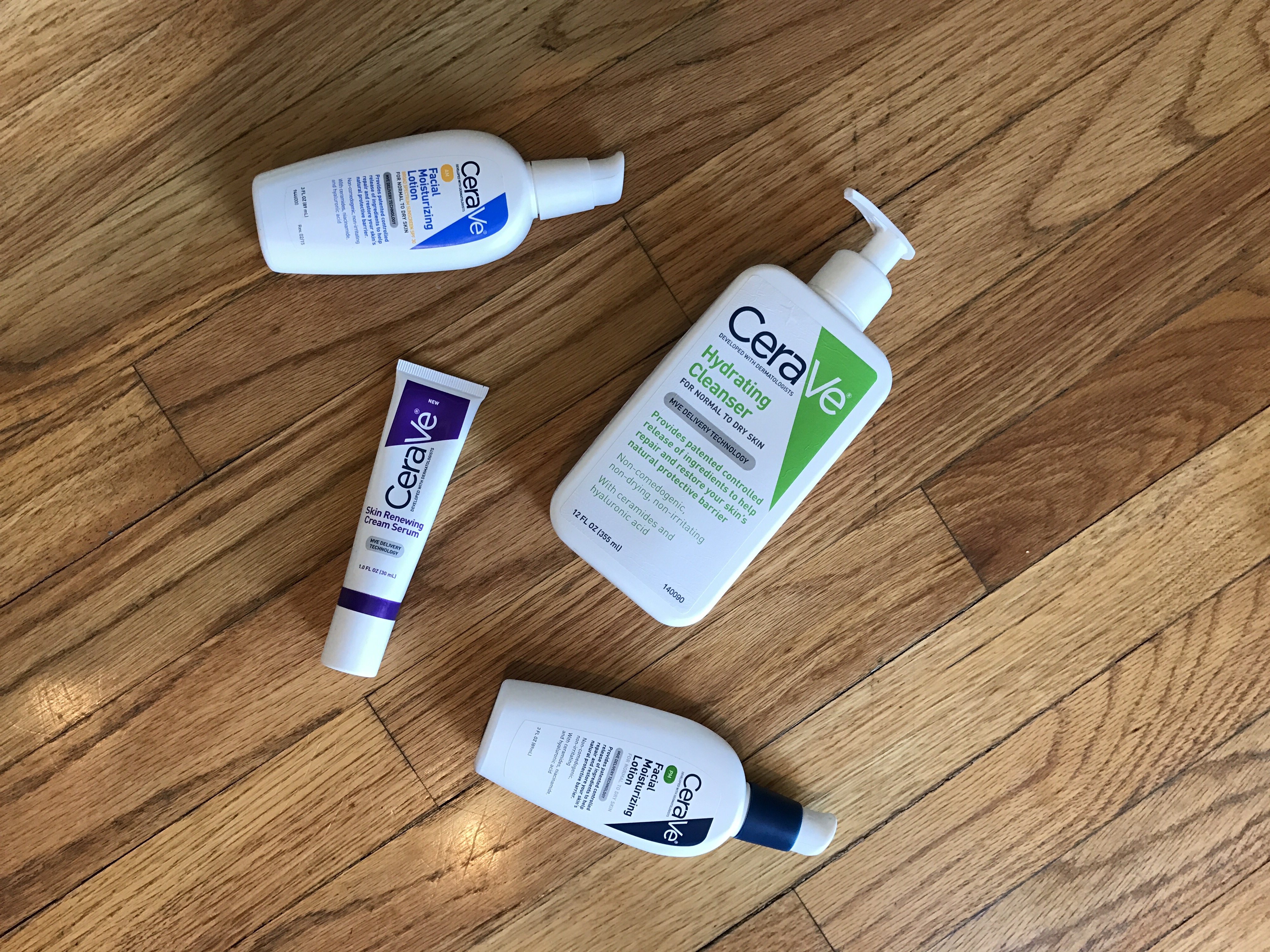 I wash my face at night with CeraVe Hydrating Cleanser for normal to oily skin. It’s super gentle and has hyaluronic acid in it which is what I was hoping for anyway. After my nightly wash I apply Skin renewing cream serum and PM moisturizing lotion. I was surprised to wake up to a super soft face that felt moisturized STILL. I do not wash my face in the morning but I do rinse it with water and pat dry then I apply the AM moisturizing lotion which contains SPF 30. My pervious moisturizer only had 15, so this is awesome considering we are outdoors a lot and I do tend to get freckles on my face, which I HATE.