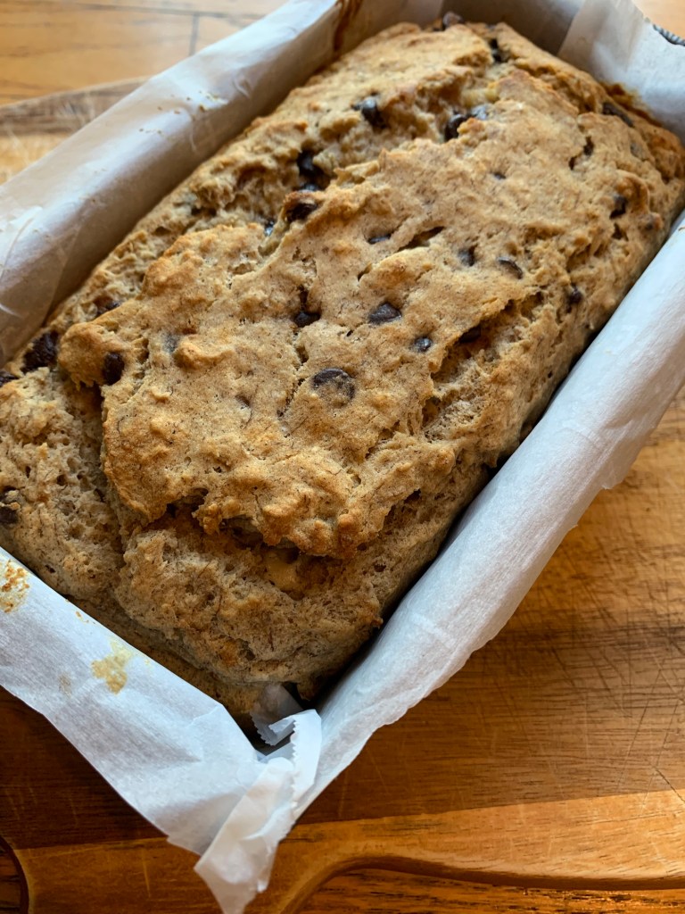 Pour contents into the loaf pan and bake for 50-55 mins or until the toothpick inserted into the center of the loaf comes out clean.